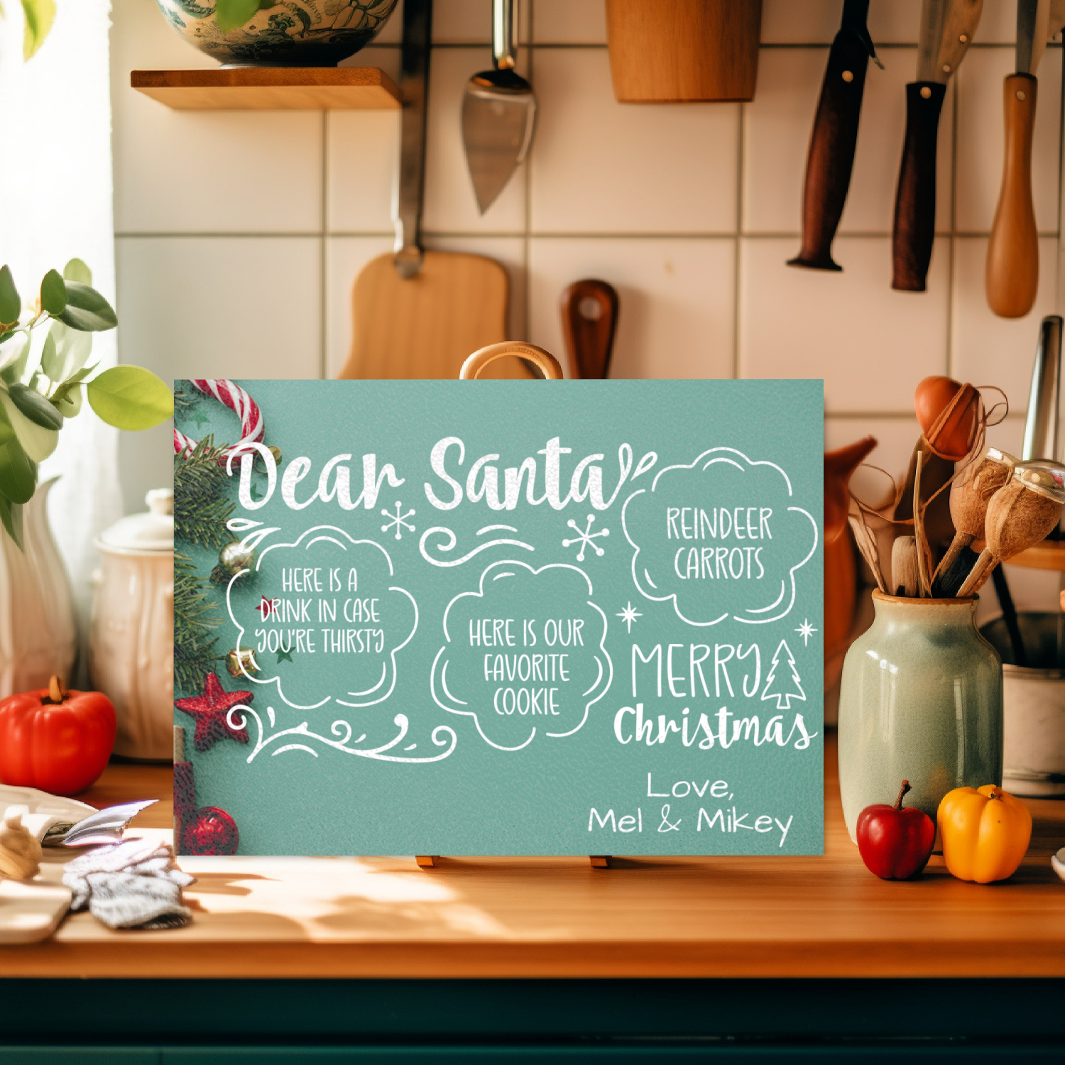 Custom Santa Tray, Christmas Eve Cookie Board, Milk and Cookies for Santa Plate, Personalized Christmas Eve Treats Tray