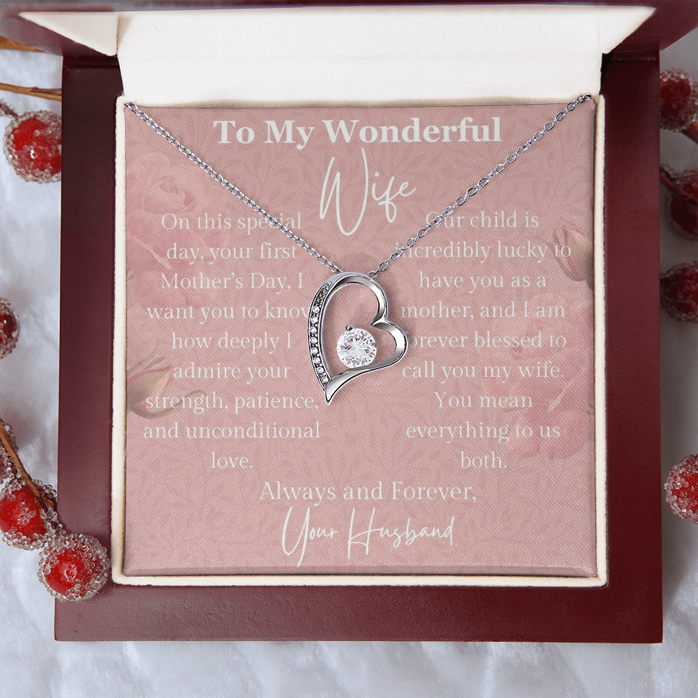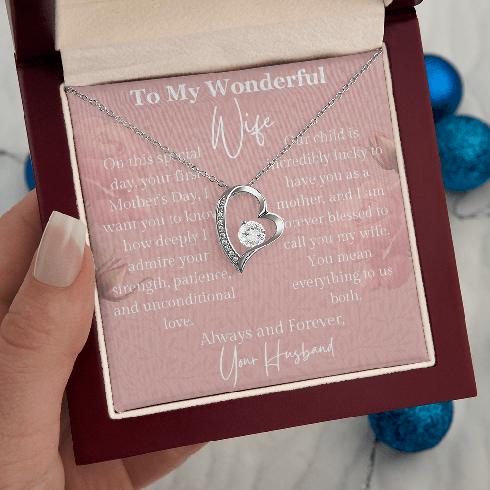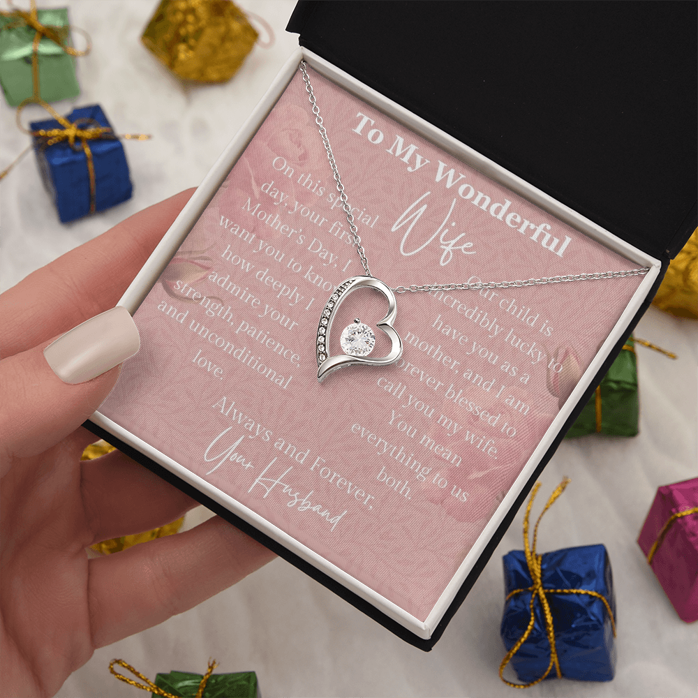 First Mother's Day Gift from Husband, Pendant Necklace Message Card