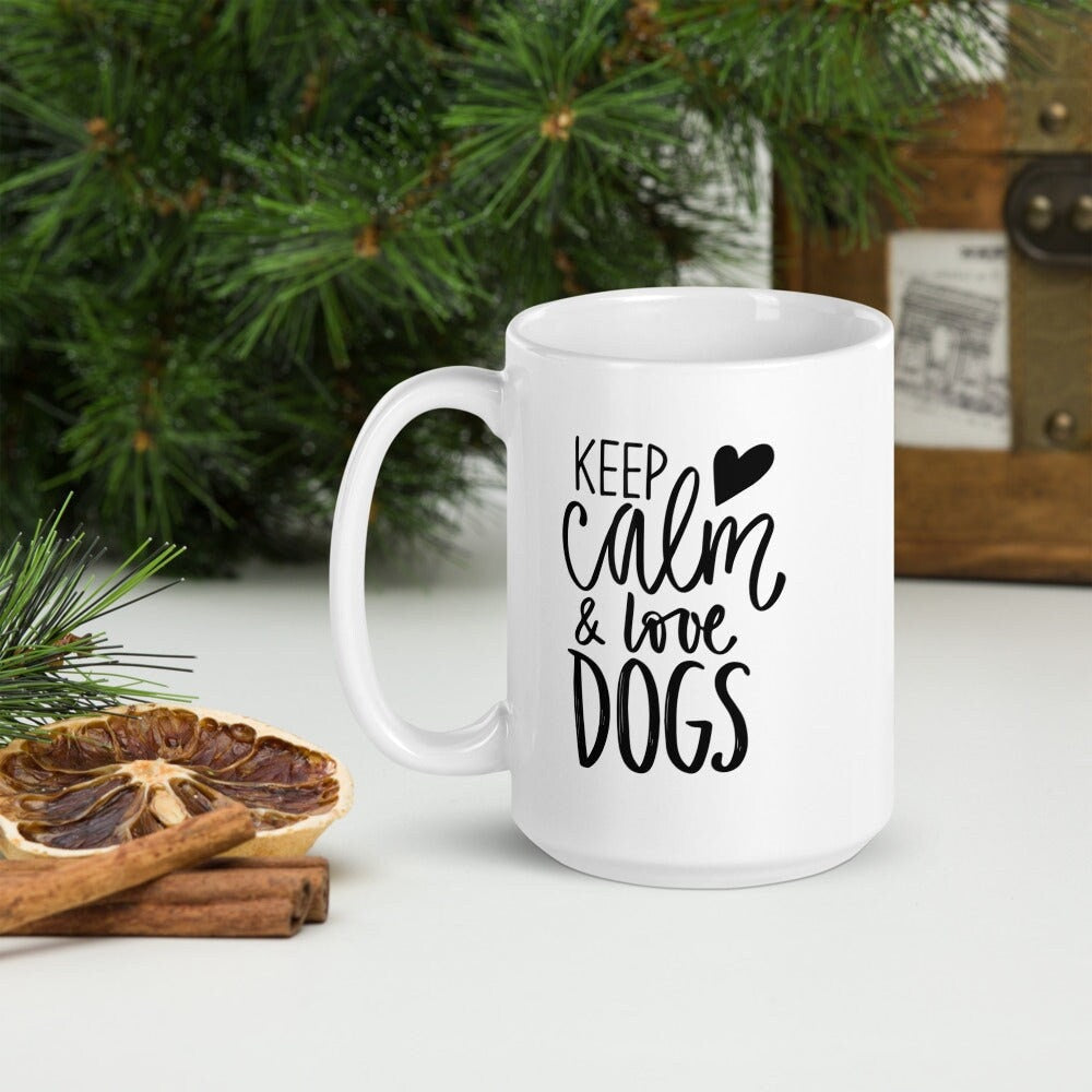 Keep Calm And Love Your Dog Coffee Mug, Funny Dog Lover Gift, Dog Dad Coffee Cup, Typography Print Hot Tea Cup, Dog Mom Novelty Latte Mug