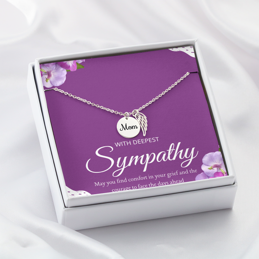 Memorial Necklace – Mom Memorial Gifts - So Sorry for Your Loss - Angel Wing Necklace for Bereavement, Sympathy, Condolences - Jewelry Gift for Grief After Death