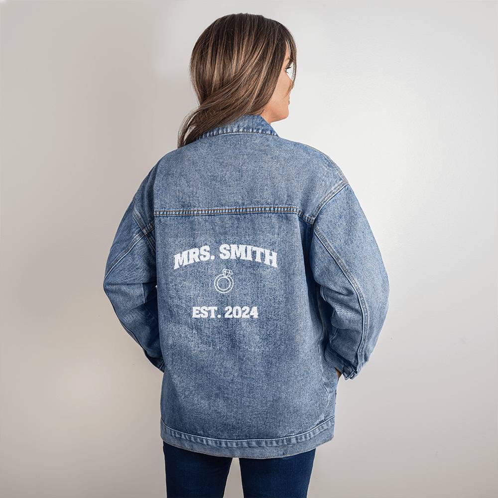 Personalized Mrs New Bride Denim Jacket, Gift for Bride, Bachelorette Party