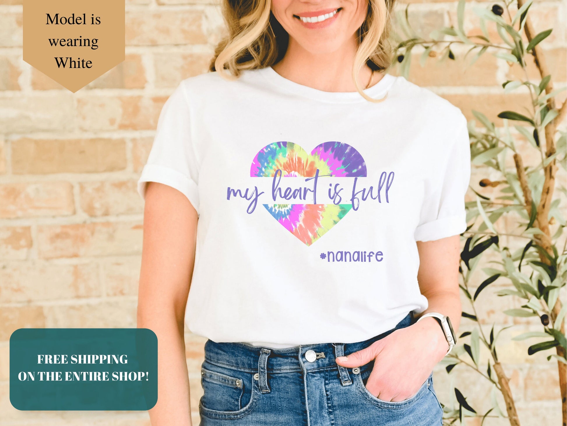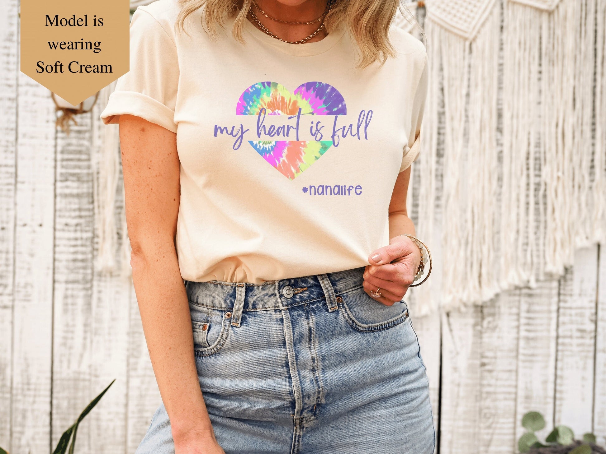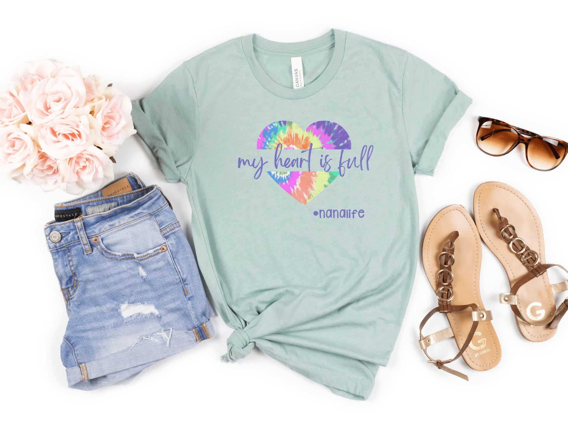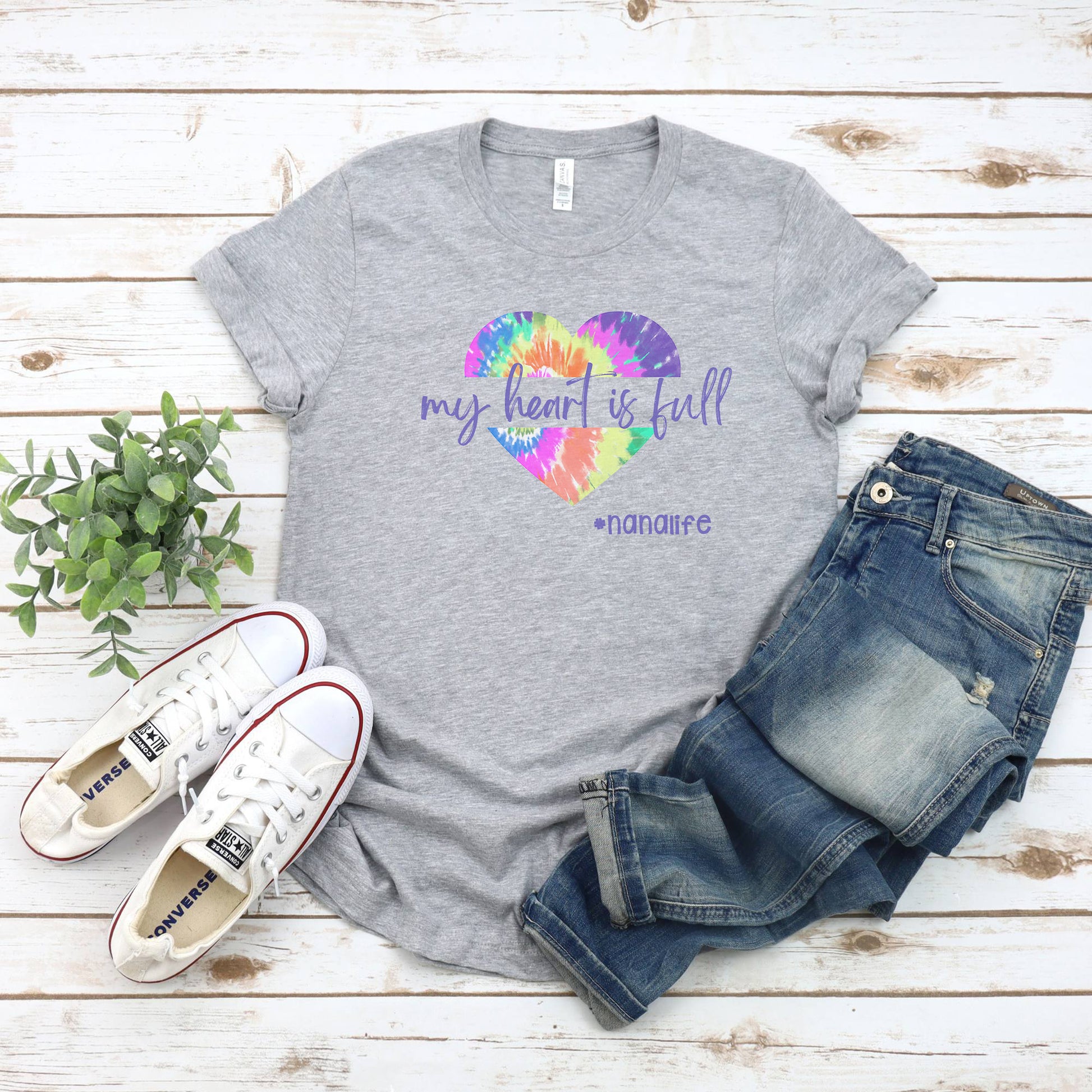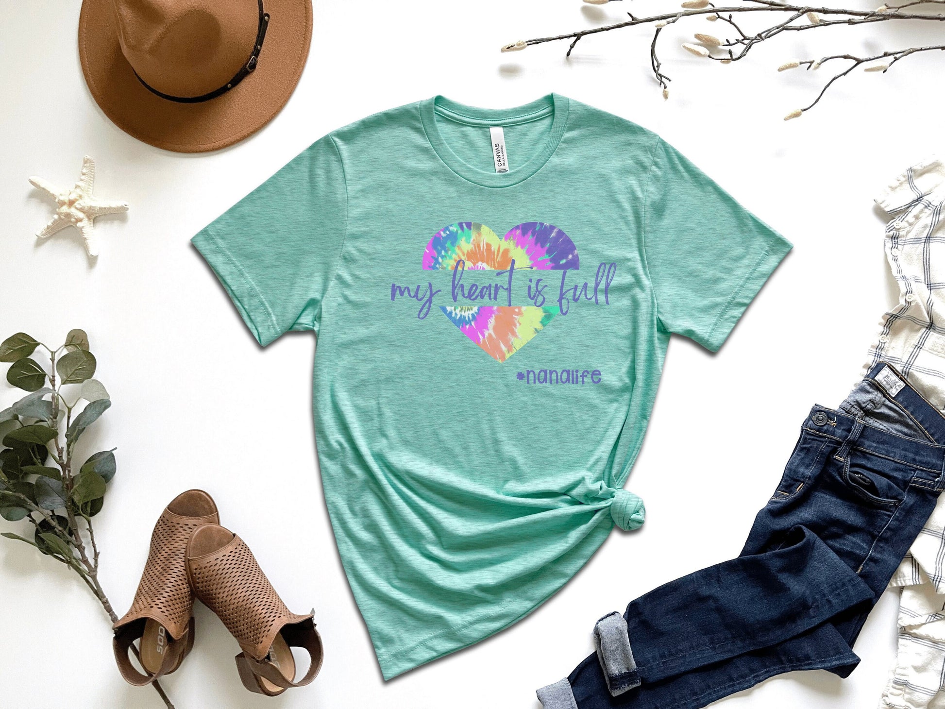 Introducing the My Heart is Full Nana T-Shirt, a delightful addition to any Nana's wardrobe. This beautifully designed shirt features a vibrant tie-dye heart that captures the essence of love and joy.