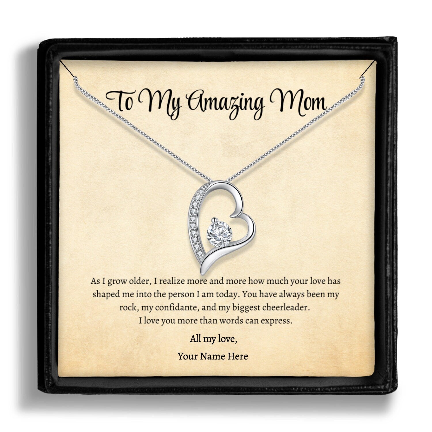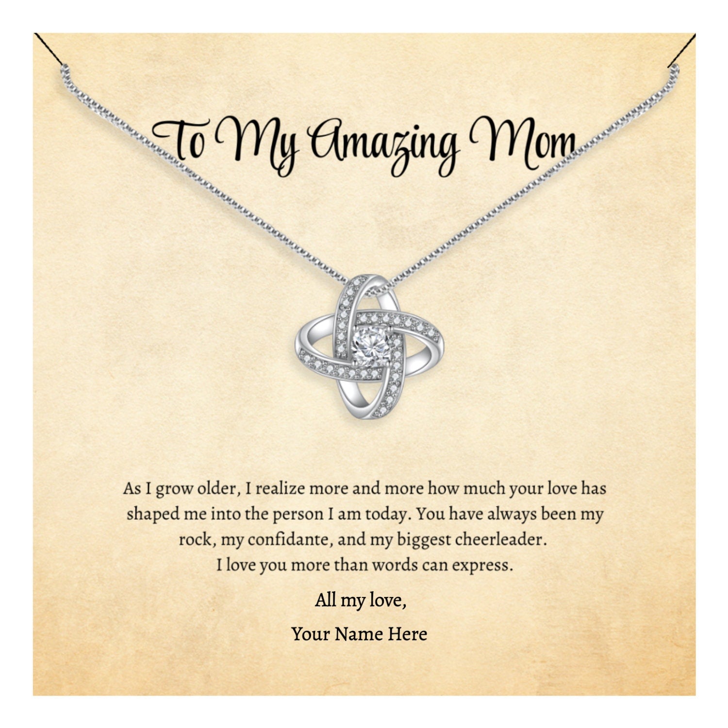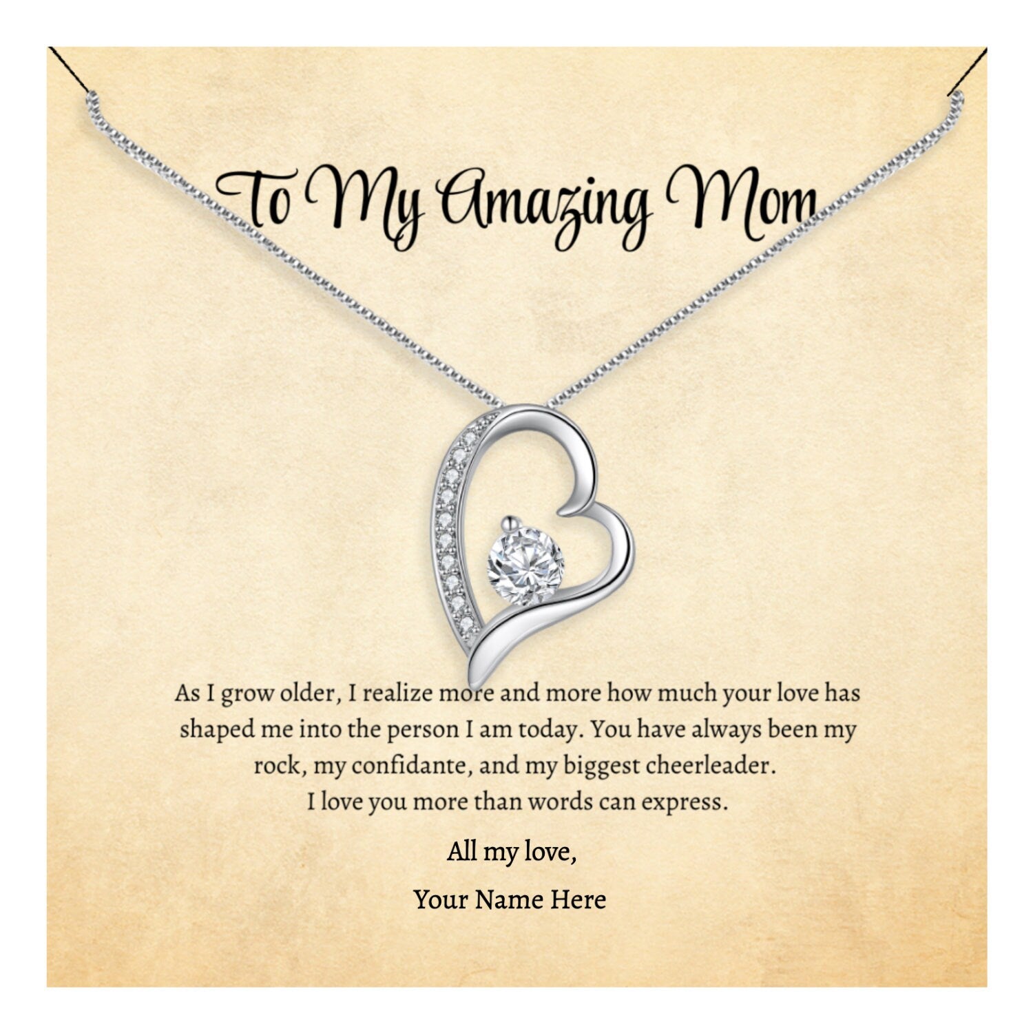 Looking for a gift that will make the special mom in your life feel cherished and loved? Look no further than our custom pendant necklaces! Each necklace in our collection is paired with a personalized message from you, printed just for her.