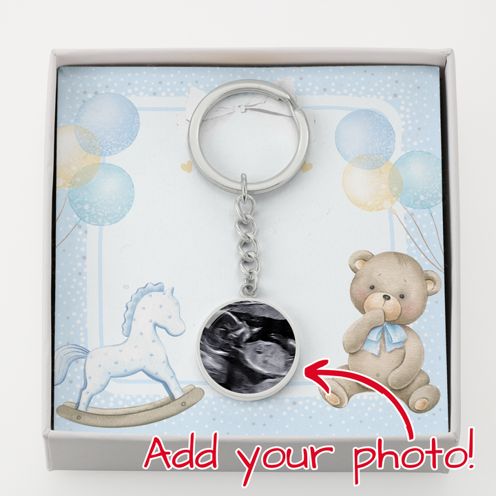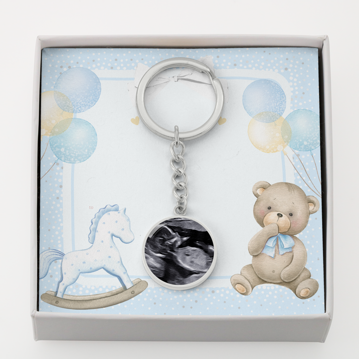 Celebrate the most precious moment of your life with our Personalized Sonogram Keychain. This unique keepsake allows you to carry your baby's first ultrasound photo wherever you go, keeping their memory close to your heart at all times.