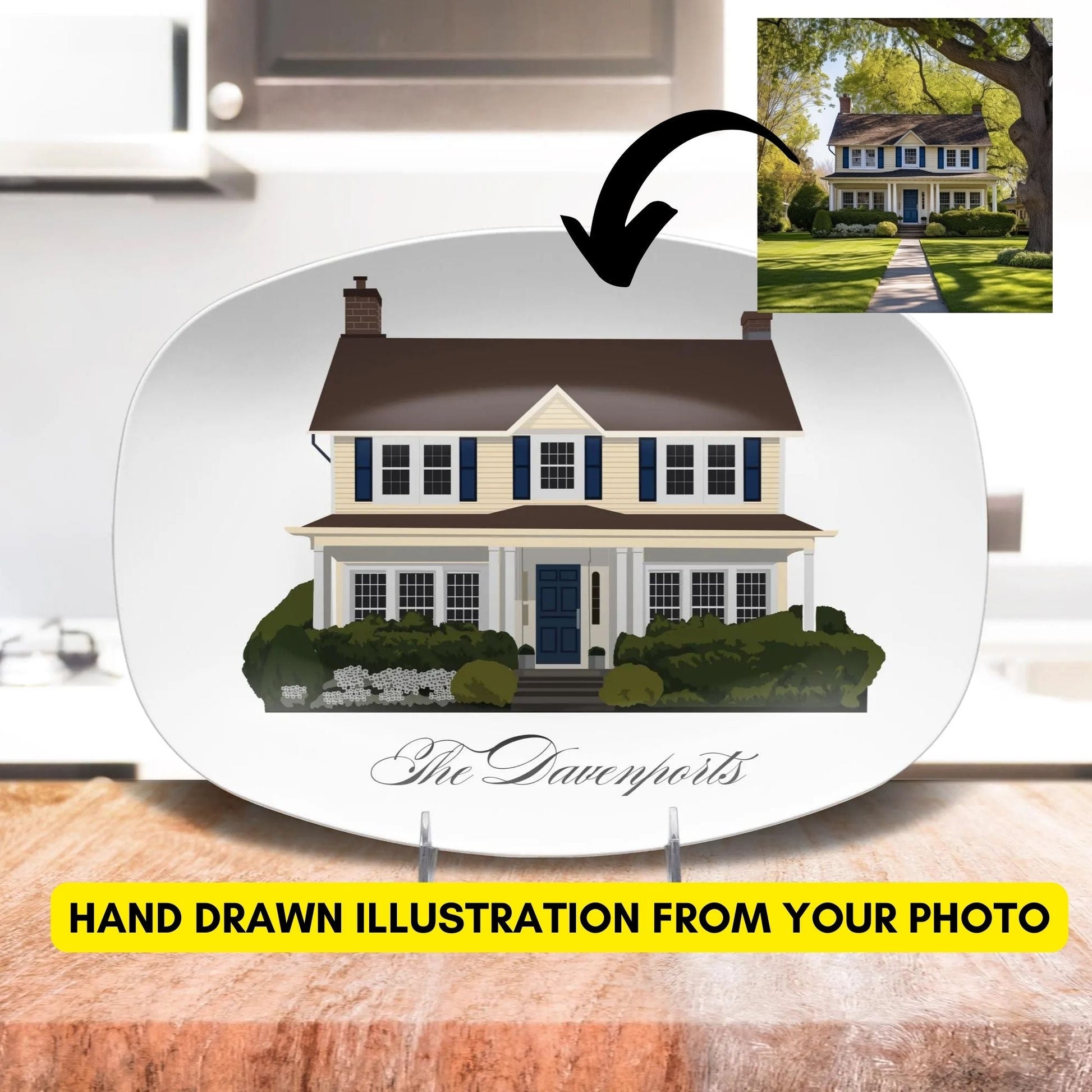 Personalized Hand-Drawn Home Portrait Platter – Unbreakable Resin Keepsake for Weddings, Housewarmings, Anniversaries, Realtors, and New Homes