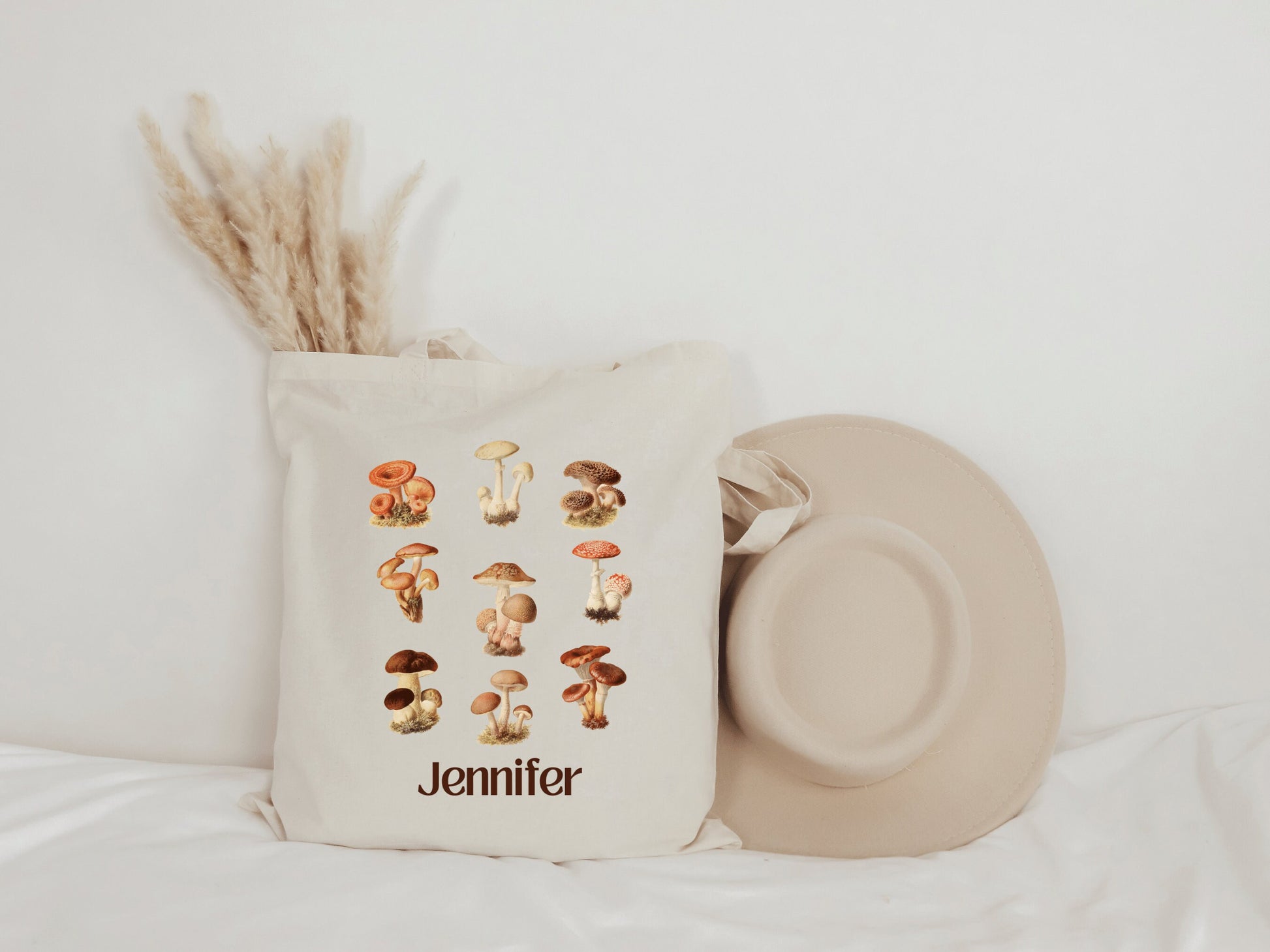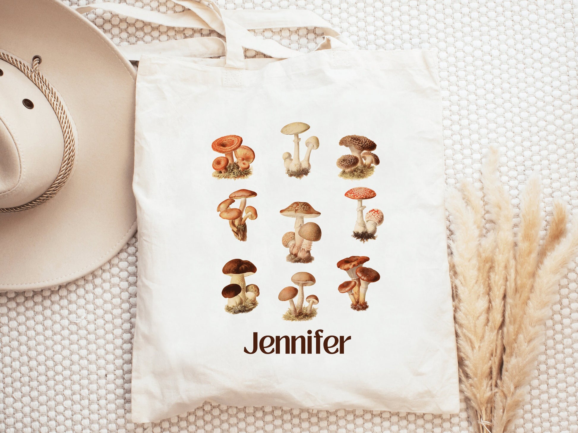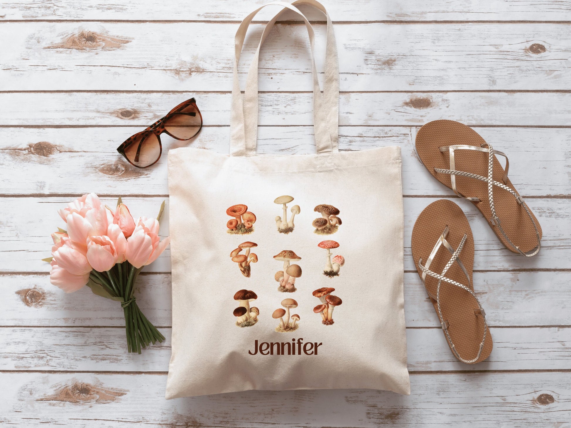 Personalized Mushroom Canvas Tote Bag, Personalized Gifts, Custom Name Tote Bag, Mushroom Art, Valentine Gifts for Her, Mushroom Tote Bag