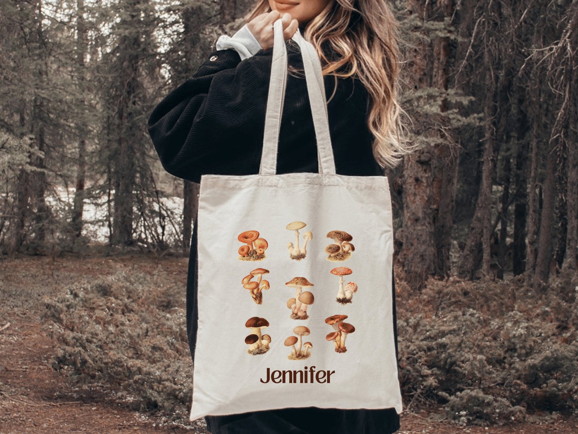 This personalized canvas tote bag is the perfect accessory for any nature lover. Made from high-quality canvas, it's durable enough to carry all your essentials on your next mushroom-picking adventure.