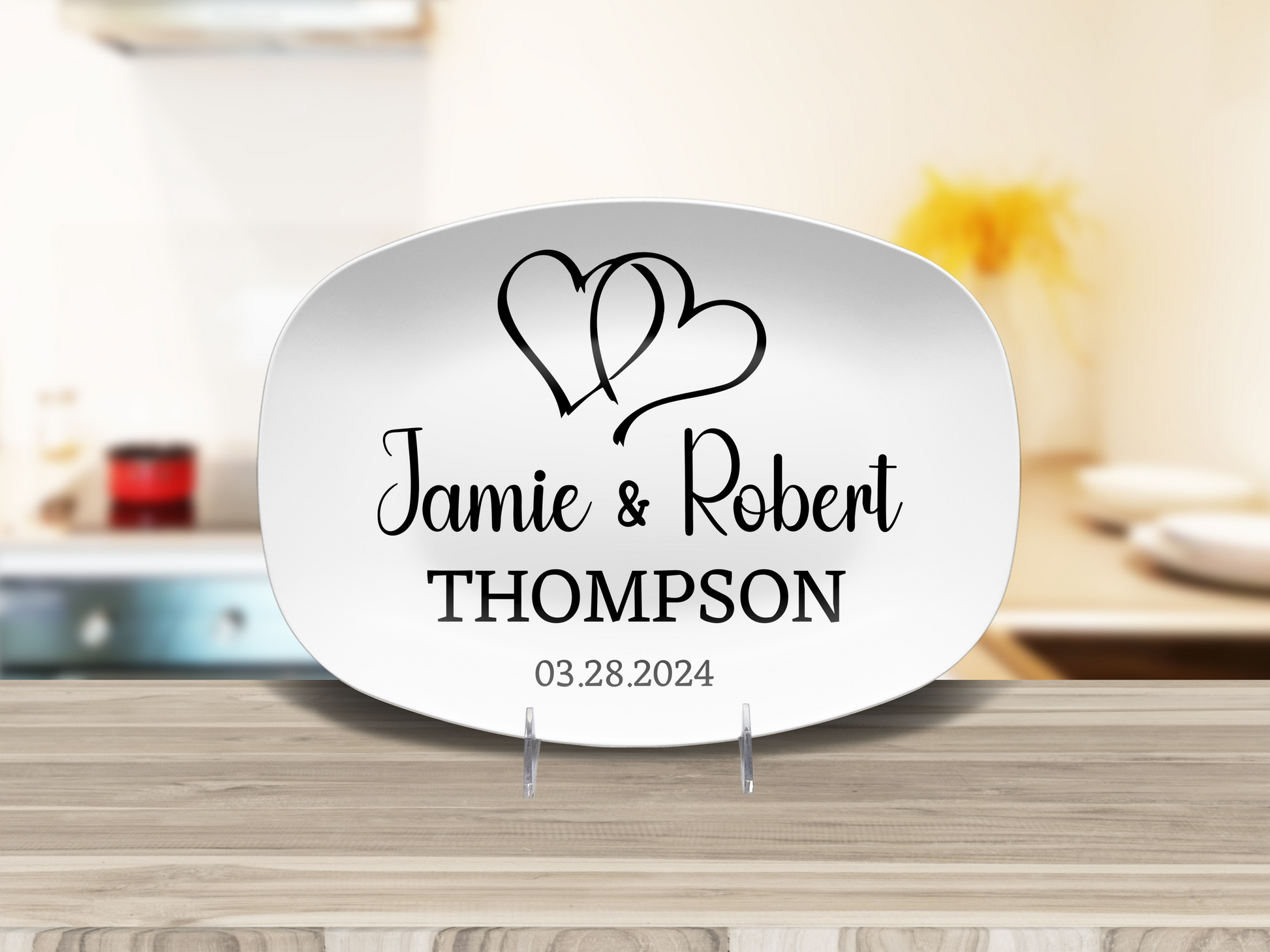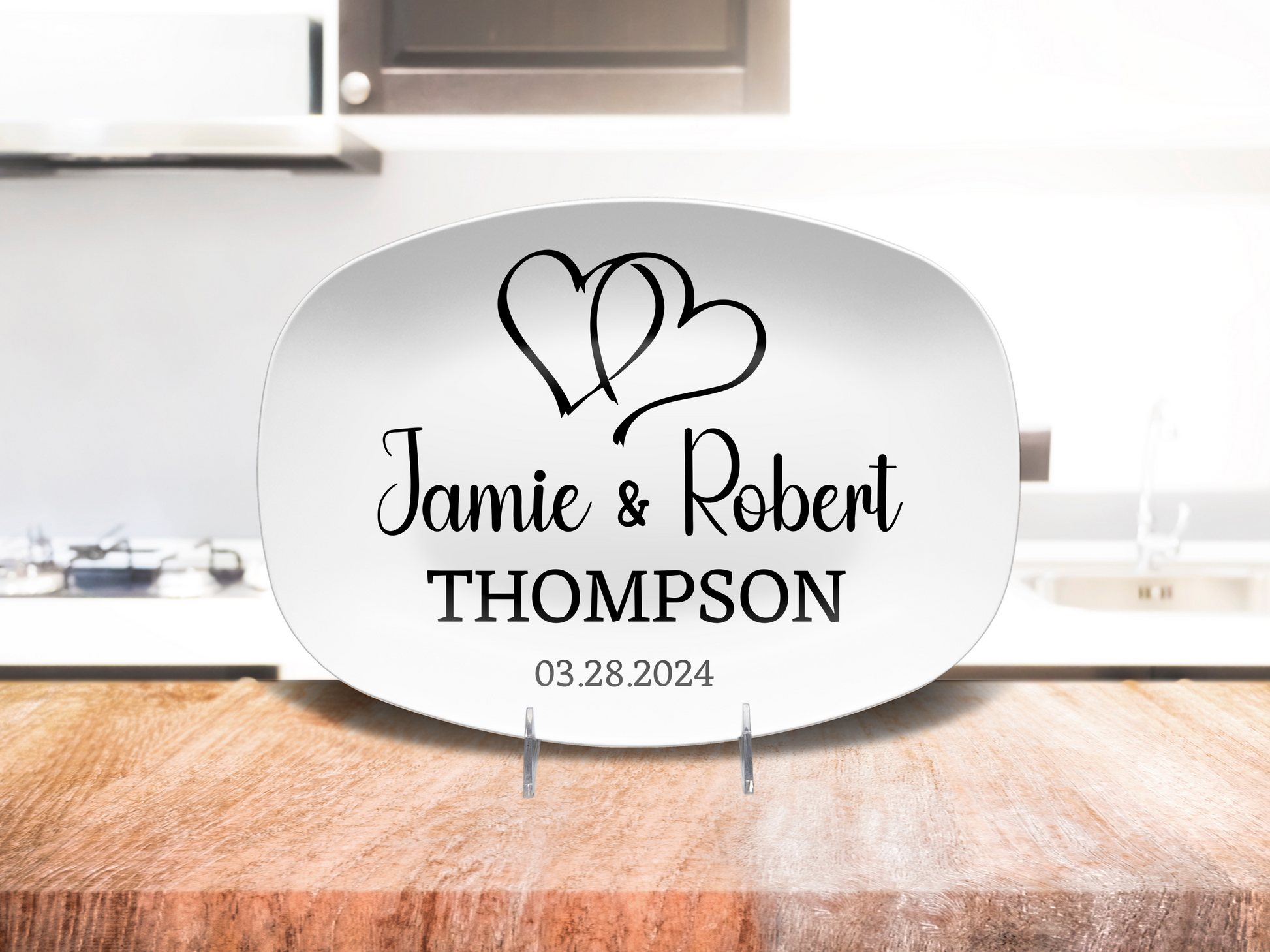 Personalized Platter, Custom Wedding, Anniversary or Housewarming Gift Idea, Gift for Newlyweds and Couples, Two Hearts Design