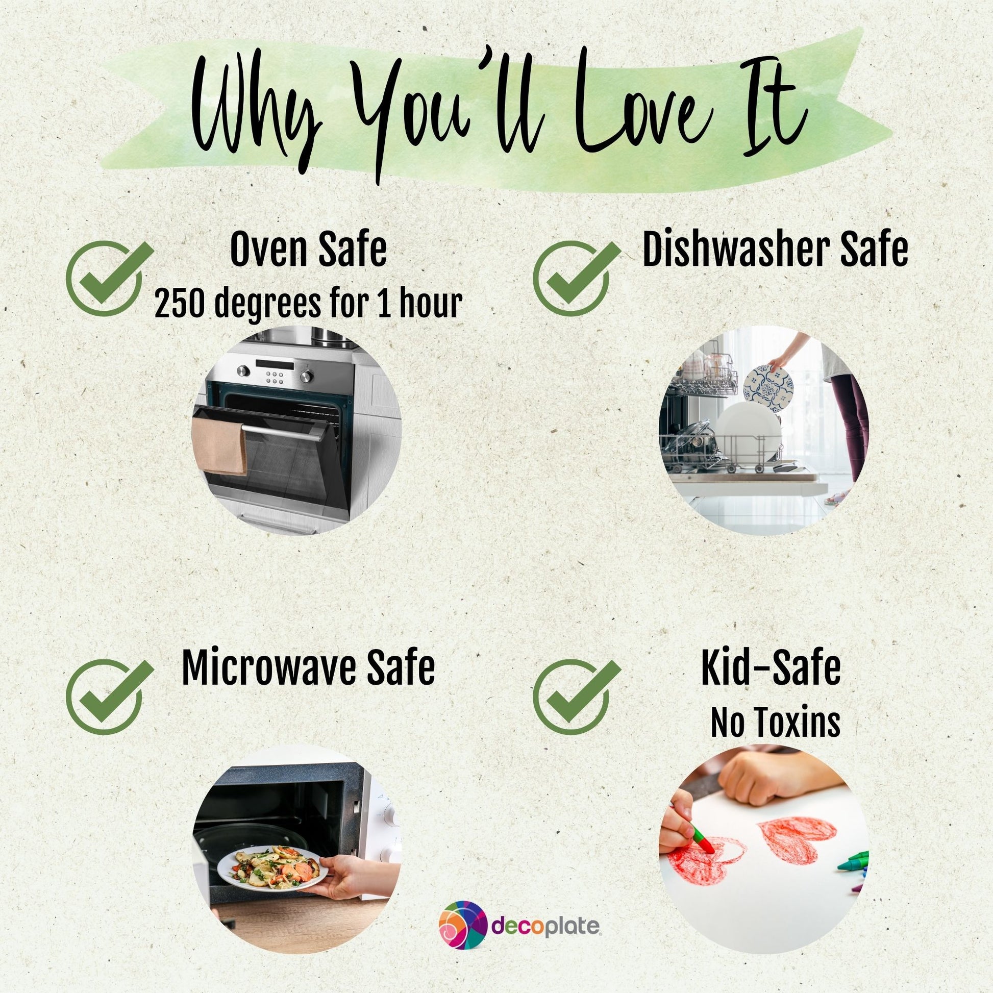 • Oven-Safe (up to 250°F for 1 hour) – Warm up any birthday treats directly on the plate.
