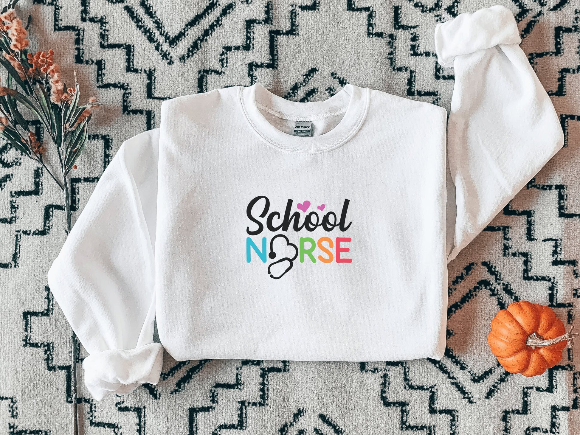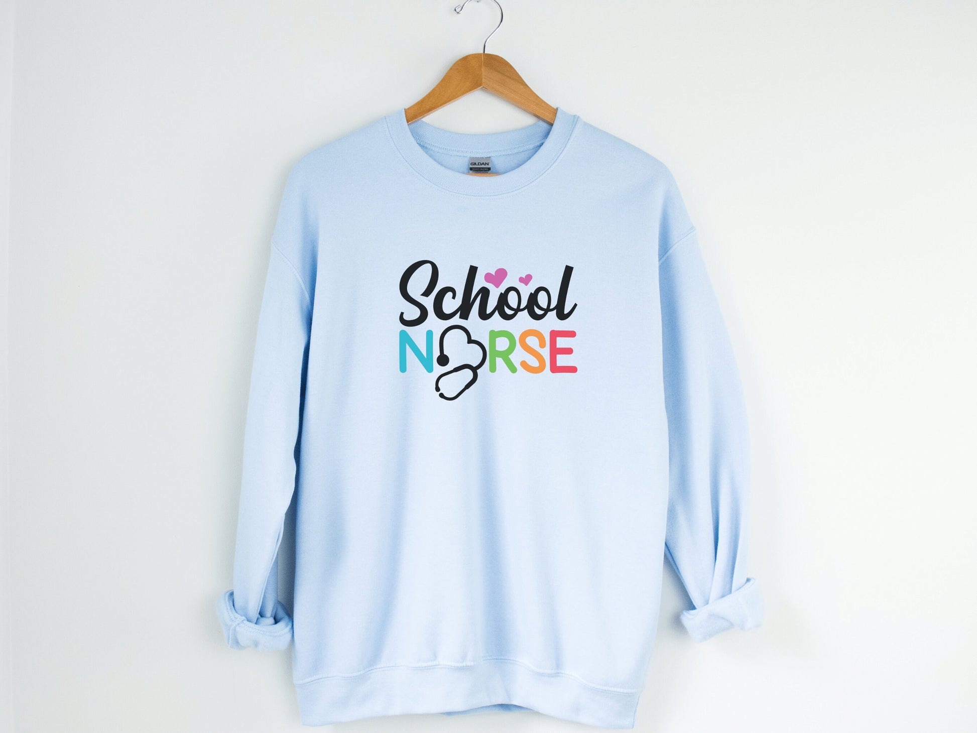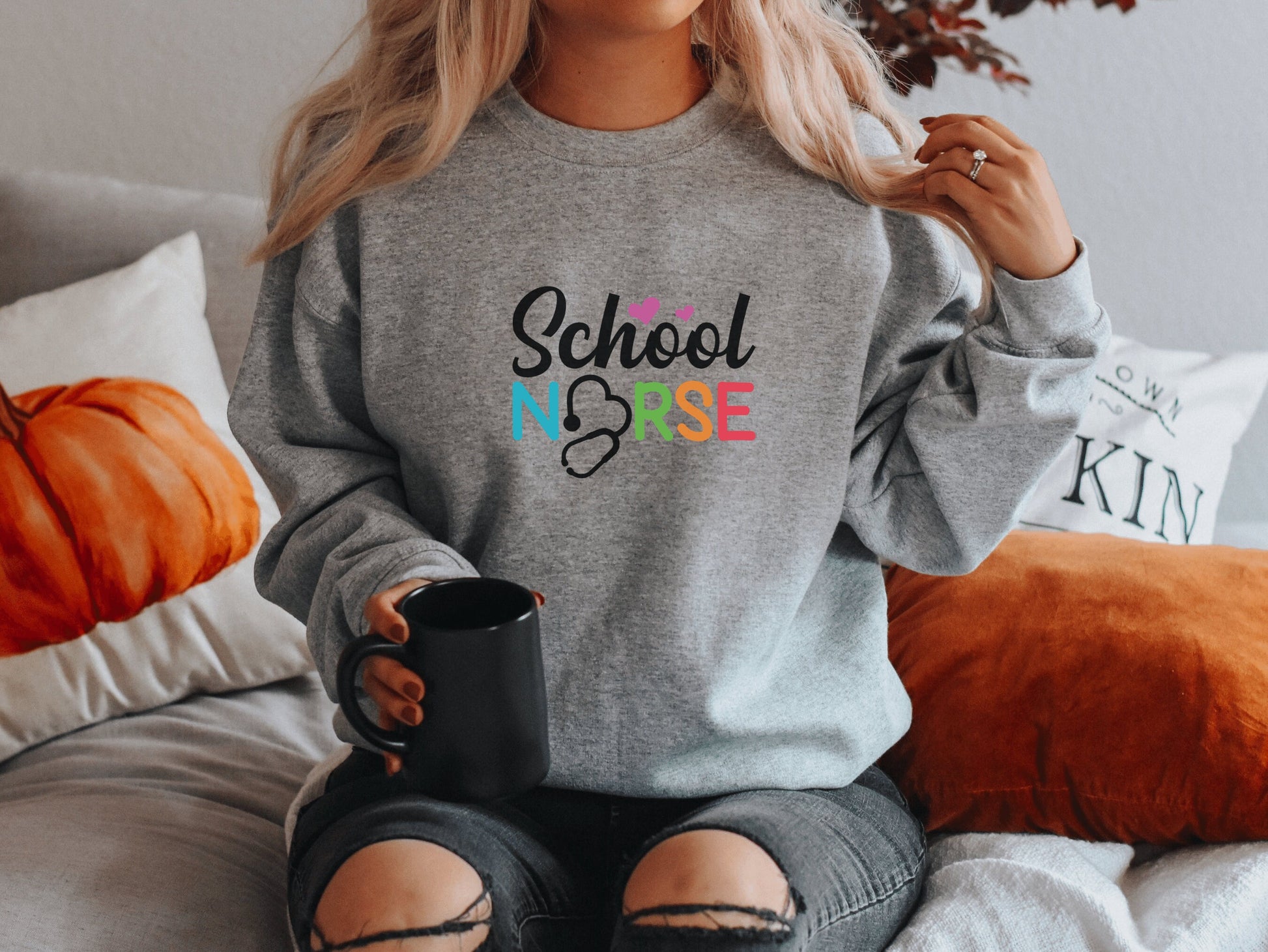 Introducing the School Nurse T-Shirt, a vibrant and cheerful addition to your wardrobe! This multi-colored sweatshirt is perfect for the first day of school, ensuring you make a memorable impression on your students.