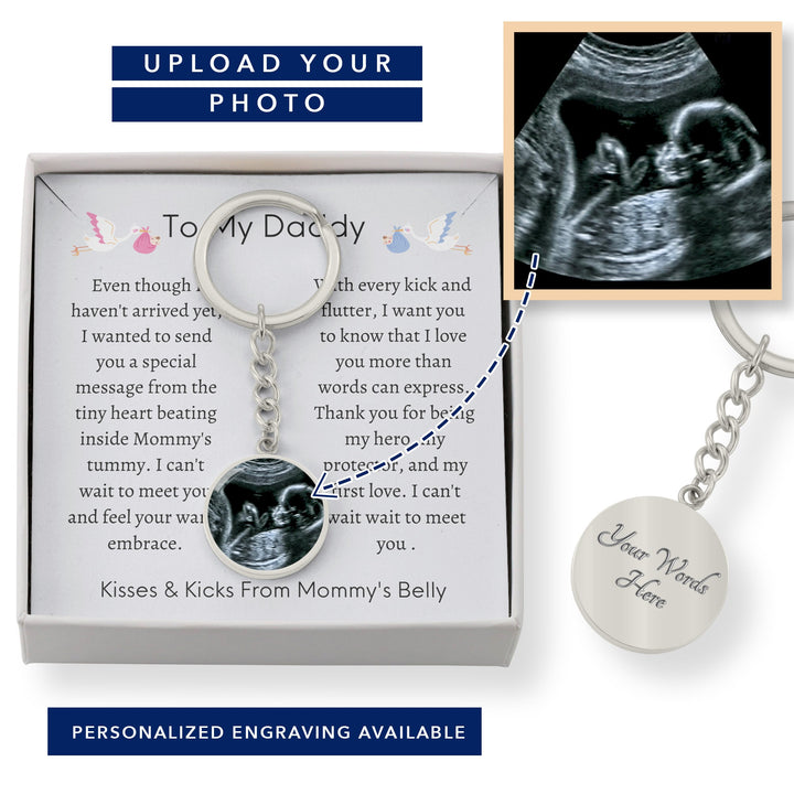 Carry the sonogram photo close to your heart with our "Sentimental Sonogram Photo Keychain: A Heartfelt Gift from Baby Bump to Daddy," and let the world share in the excitement and anticipation of your growing family.