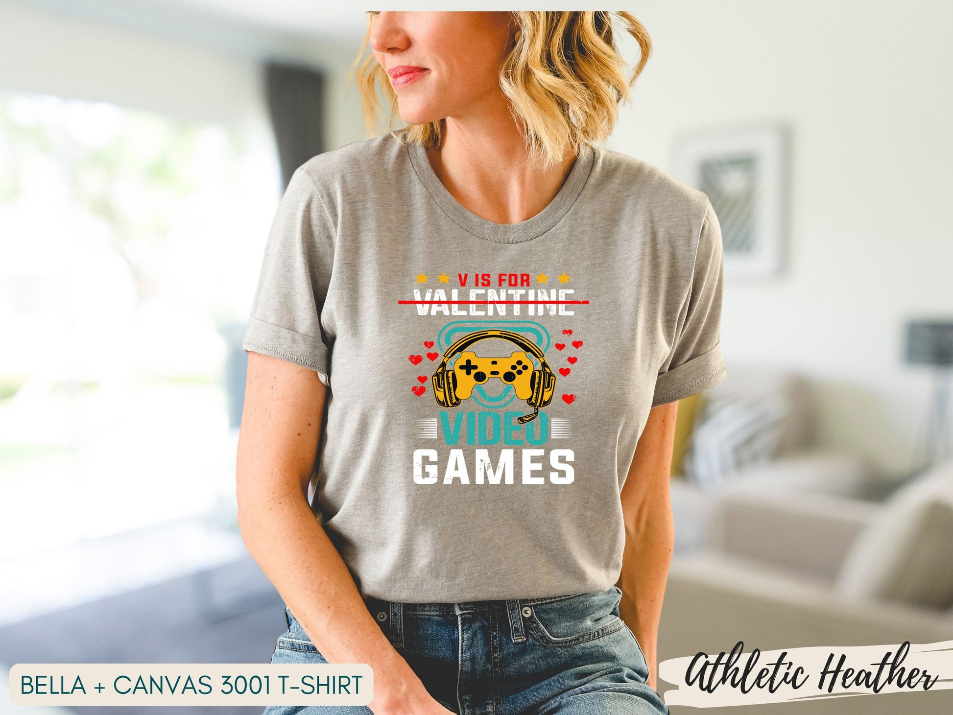 Get ready to game on with this hilarious V is For Video Games Valentines Day shirt! Perfect for any gamer, this shirt features a playful twist on the classic Valentine’s Day theme, with the letter 'V' cleverly replaced with a retro video game controller.