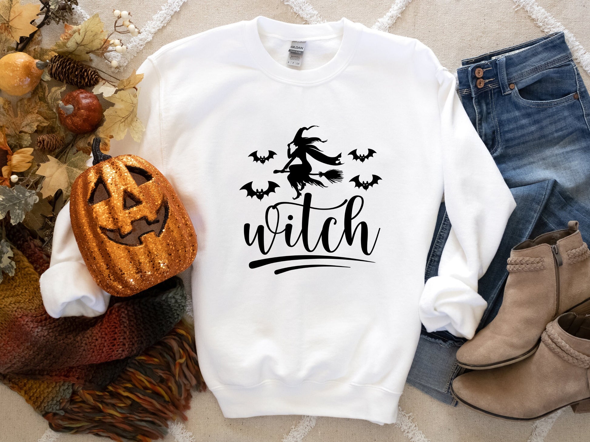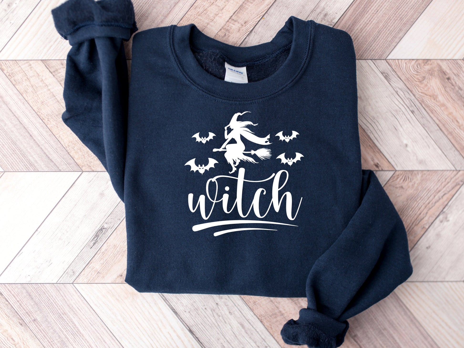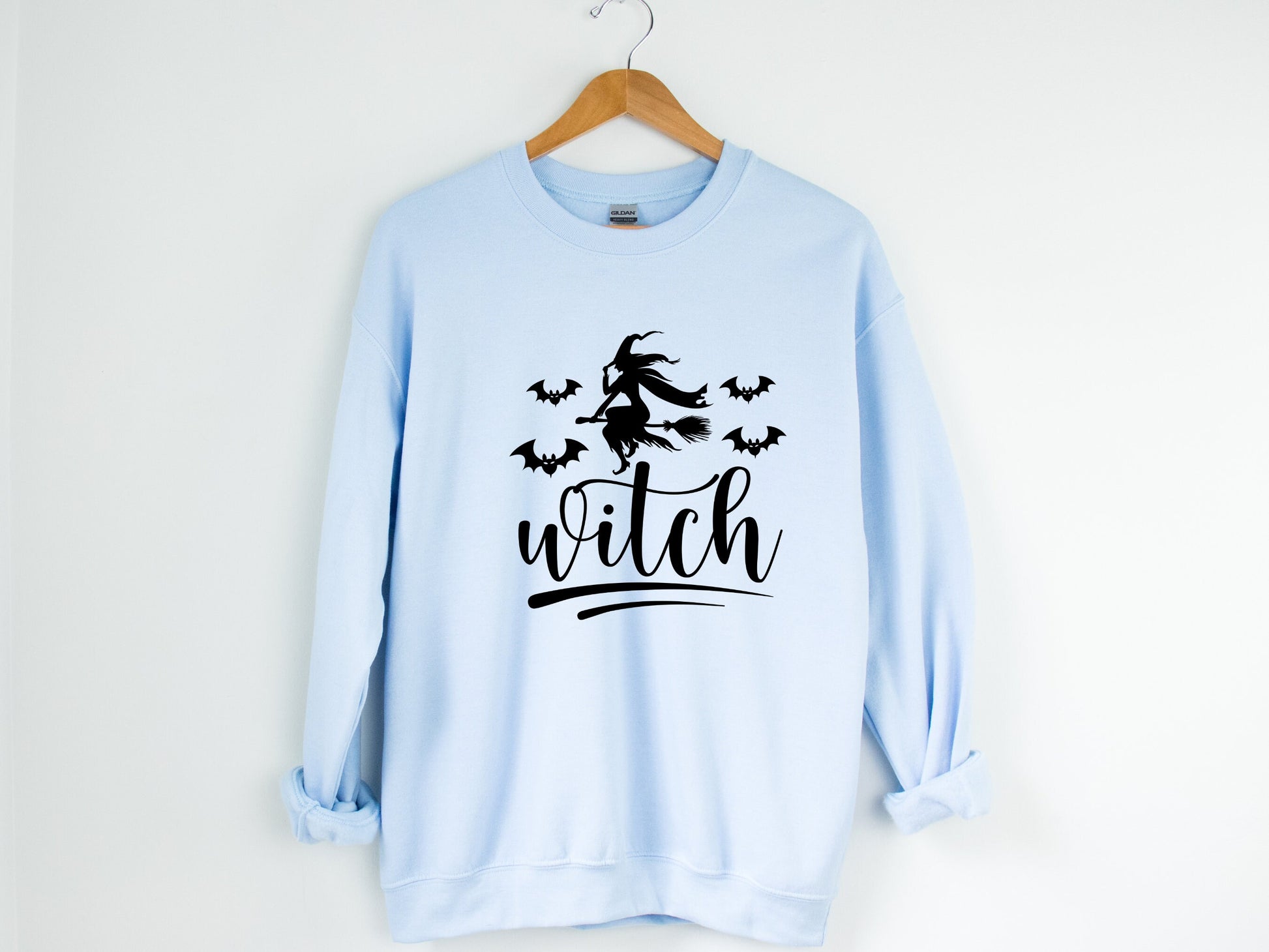 Get ready to cast a spell on everyone around you with our enchanting Women’s Witch Broom Flying Halloween Sweatshirt with Bats! This bewitching sweatshirt from Gildan 18000 is the perfect way to make a whimsical statement this Halloween season.